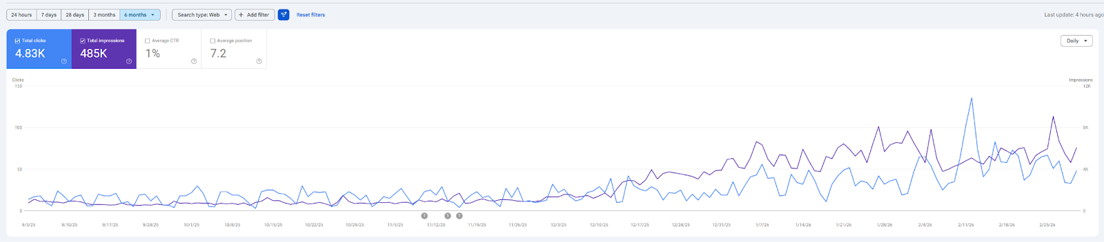 I will attach a few screenshots here where we did only SEO and still saw strong implications in citations. But to be fair, the way we’ve always approached SEO is a bit different. I’ve always seen it as a multidimensional channel that impacts other channels, not something that should exist separately from them, but as part of a cohesive ecosystem. To provide data for the rest of the channels, to be the best multidimensional KPI-oriented channel of all, and to be treated as a brand visibility and lead gen channel combined.